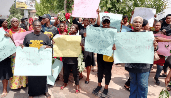 They threatened to go naked if they were not answered by the Independent National Electoral Commission (INEC) on why the presidential election polling units results have not been transmitted electronically to the INEC-resut viewing portal (iREV) as promised by the commission.