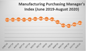 The August manufacturing PMI of 48.5 index points is, however, an improvement from the 44.9 index points recorded in July as there has been a gradual normalisation of the economy as lockdown is being eased and the economy is opening up.