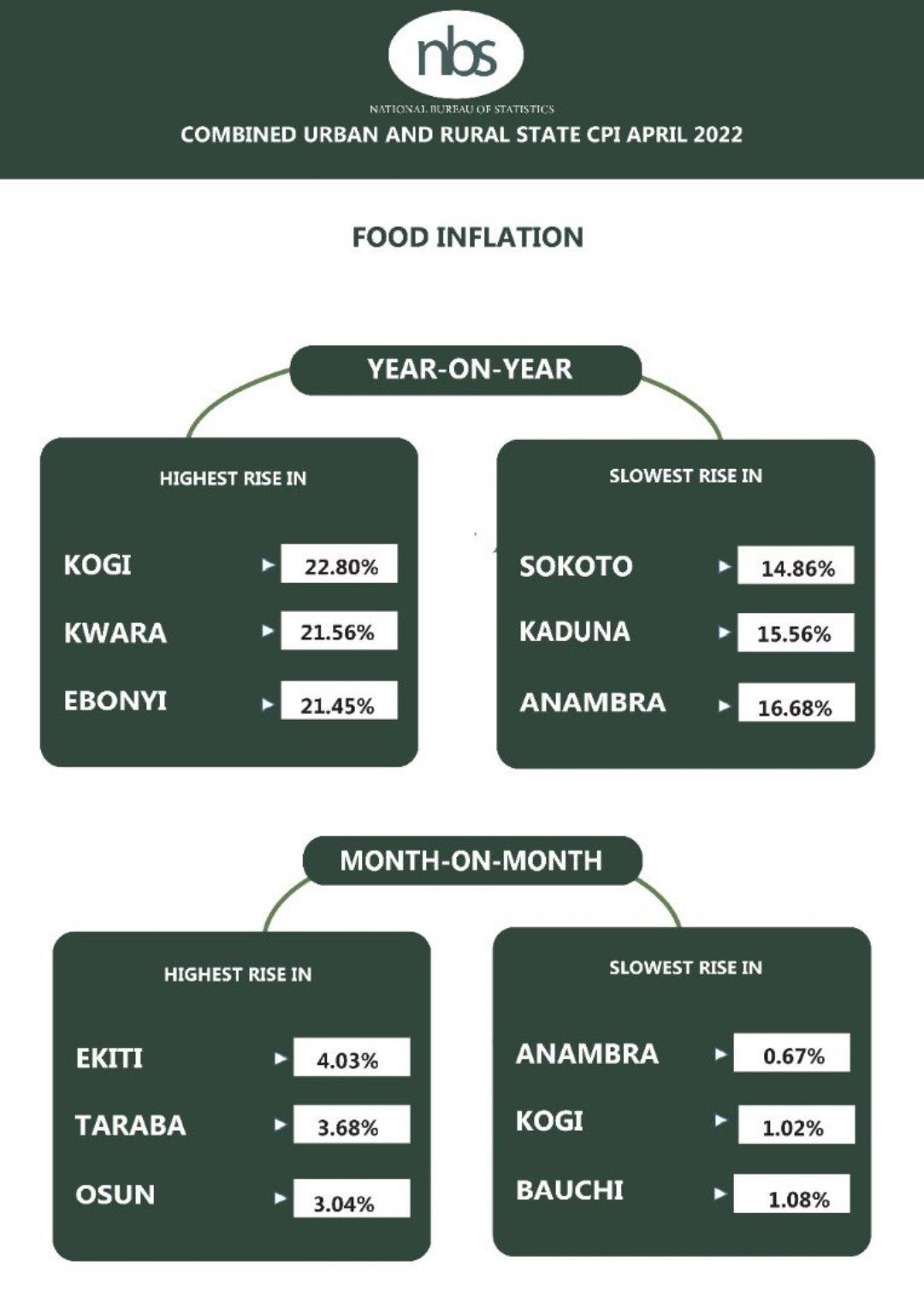 The NBS report also highlights that on a month-on -month basis, core inflation, which excludes the prices of volatile agricultural produce increased to 1.22 percent in April 2022.