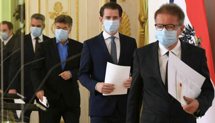 Flanked by senior government ministers, Chancellor Sebastian Kurz on Monday presented a timetable to restart the Austrian economy, detailing a series of phased steps to normalise life while minimising the risk of a surge in new infections.