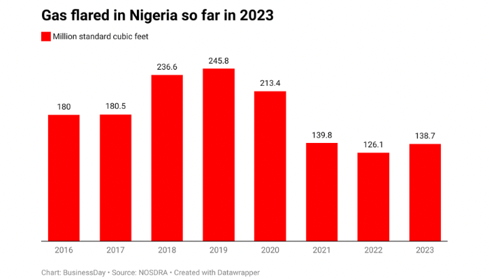 Oil and gas companies in Nigeria have flared gas worth $485.3 million…
