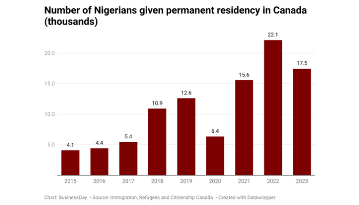 The number of Nigerians given Permanent Residency (PR) in Canada dropped for…