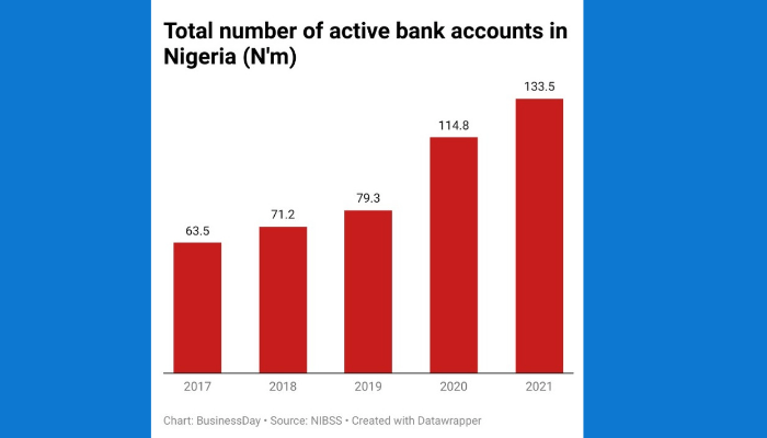 Nigeria’s active bank accounts increased to 133.5 million in December 2021, as…