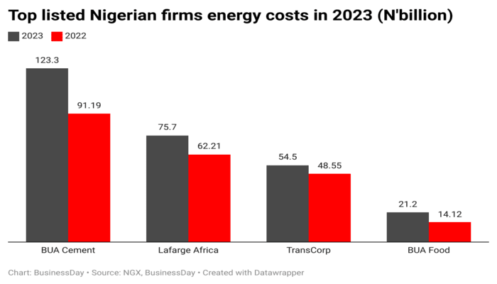 The energy costs incurred by several major listed companies in Nigeria rose…