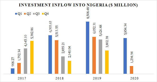 Investment inflows into Nigeria declined by 78 percent year-on-year to a four-year…