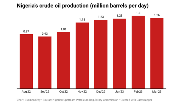 Nigeria’s crude oil output fell to 1.26 million barrels per day (bpd)…