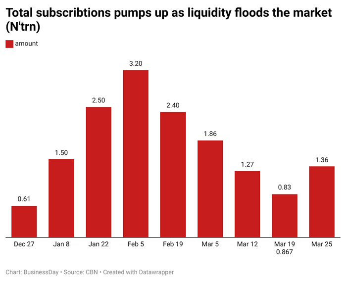The demand at the March FGN bond auction dropped as a result…