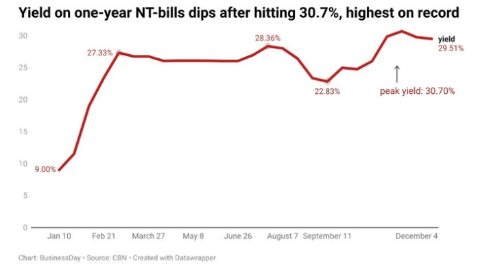 Nigeria's one-year Treasury bills (T-bills) auction witnessed further decline in its yield…