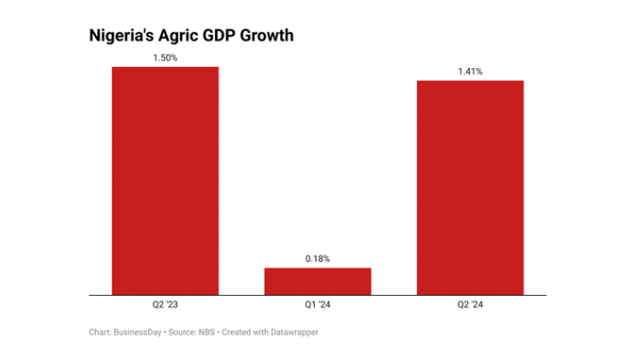 Nigeria’s agric growth slowed to 1.4 percent in the second quarter of…