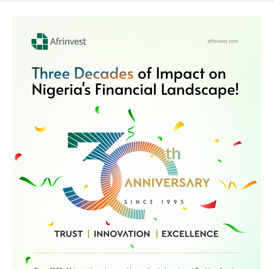 Afrinvest (West Africa) Limited will this month commemorate its 30th anniversary with…