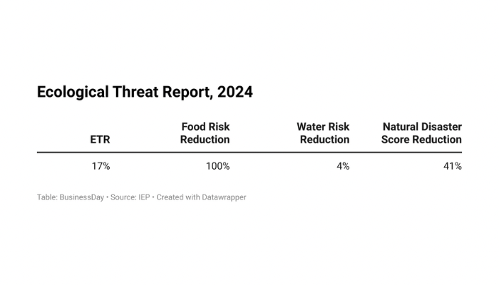 Nigeria has shown notable improvement in the latest Ecological Threat Report, with…