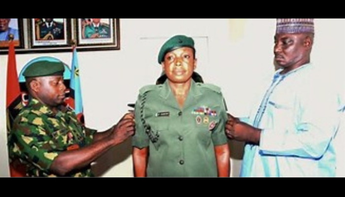 Hajara Egbunu, a female soldier from the elite Infantry Corps and the…