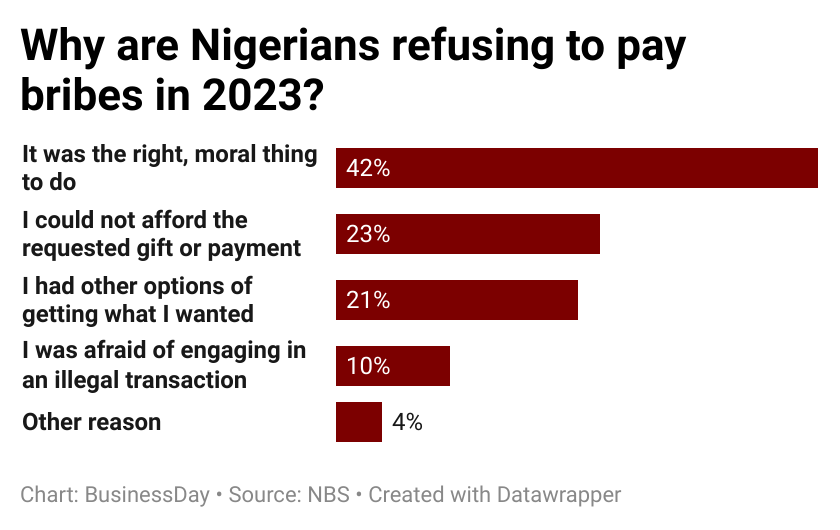 Seventy percent of Nigerians who were asked to pay a bribe in…