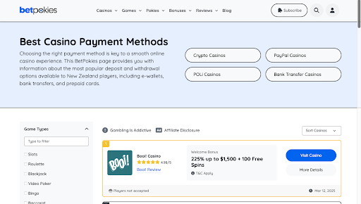 BetPokies.co.nz covers many gambling aspects, therefore, on this website, you can find everything from detailed casino reviews to the latest news in the gaming world. Yet, today, we would like to draw your attention to their payment guides. They contain in-depth research, are constantly updated, and are always up-to-date.
