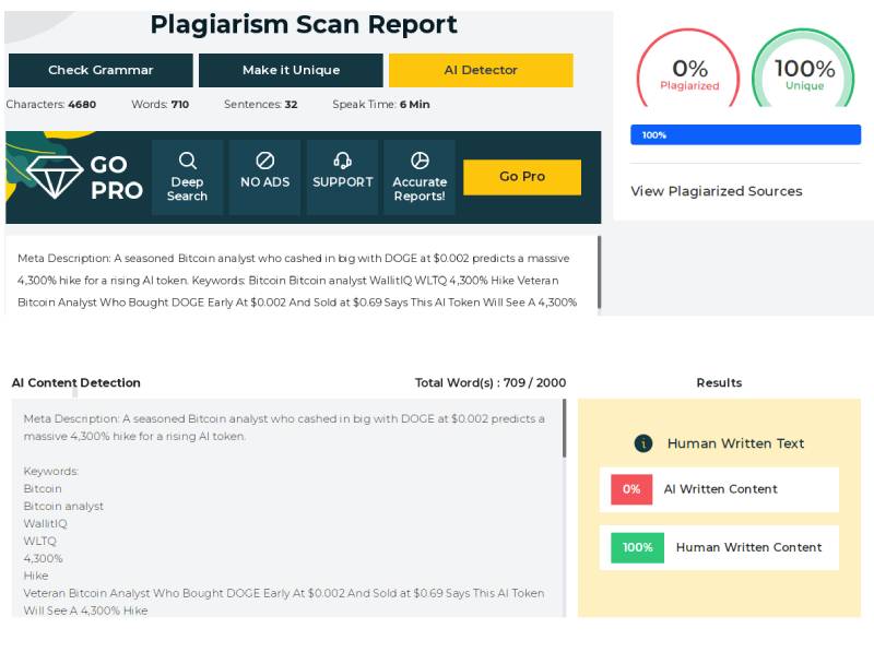 The lead Bitcoin analyst who profited from Dogecoin price rise from $0.002 to $0.69 predicts a 4,300% hike for the AI-powered decentralized wallet WallitIQ (WLTQ). WallitIQ(WLTQ) might represent the next major crypto opportunity due to its focus on security, user experience, and cutting-edge AI technology. If the bitcoin analyst Dogecoin price prediction track record is any indication, this may be your chance to invest in the next crypto wave.
