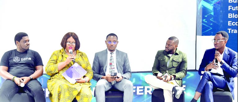 Panelists: Deborah Ojedengbe, CEO, of AFEN Blockchain Network; Nathaniel Luz, CEO and co-founder, Flincap; Ezichim Onweagba, director of partnerships, Quidax; Fure Eviosekwofa, CEO of Forex Technologies; and Abiodun Attah, executive director, technical services, Nigerian Communications Satellite Ltd; Nathaniel Luz, CEO. The panel session was moderated by Temitayo Jaiyeola, senior tech reporter at BusinessDay.
