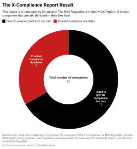 BusinessDay check shows that only 7 companies (about 33.3percent) of the 21 companies the NGX Regulation Limited (NGX RegCo) listed provided their compliance due dates.