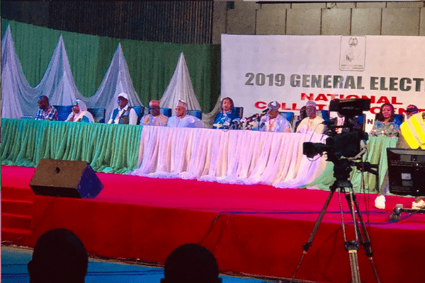 “From today the collation centre is hereby declared open until the final determination of the 2019 Presidential election. During the course of proceedings, there may be interludes or adjournments. This will be announced by the returning officer as the need arises.