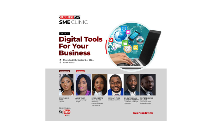 BusinessDay Media Limited is pleased to announce the September edition of its SME Clinic, an event dedicated to supporting the growth and sustainability of small and medium enterprises (SMEs) in Nigeria. Set for Thursday, 26th September 2024, at 10:00 AM (WAT), this edition will focus on the theme “Digital Tools for Your Business” and promises to deliver valuable insights and strategies to empower business owners and entrepreneurs.