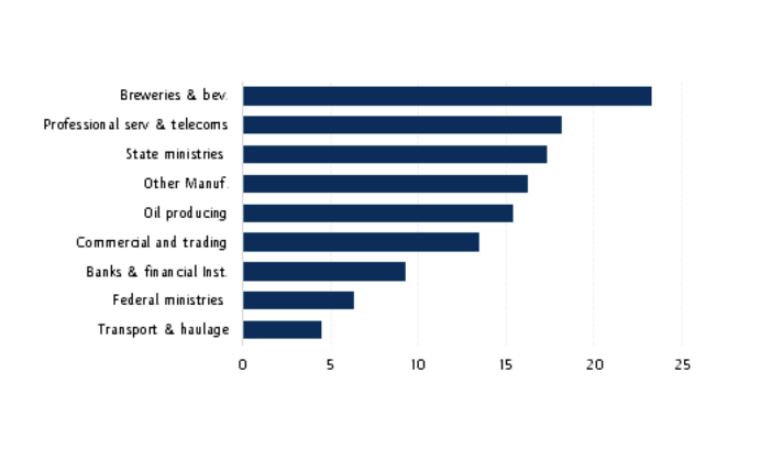 · Zooming down on domestic CIT payments, the breweries and beverages sector generated the highest amount of CIT at NGN23.3bn. We recall that within the manufacturing sector the foods, beverages and tobacco segment posted the fastest GDP growth rate of 7.1% y/y in Q1 ‘21. Another notable sector is professional services, including telecoms which generated N18.2bn.