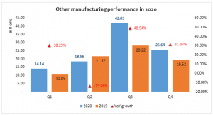 The other manufacturing sector remitted N100.37 billion in 2020. In comparison to the previous year, the sector recorded the highest YoY growth of 48.94 per cent in Q3, from N28.22 billion in 2019 to N42.03 billion in 2020 amidst other appreciations in Q1 and Q4. However, in Q2 2020, tax remittance decreased by 13.96 per cent from N21.57 billion from the previous year. The reason is not farfetched; the sector was affected by the lockdown around that period.