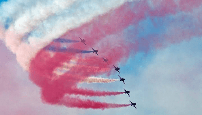 But the event only involved helicopters and the Red Arrows aerobatic display team, the Ministry of Defence (MoD) said.