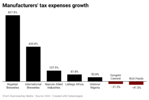 Out of seven listed consumer goods firms in Nigeria, Dangote Cement Plc, Nigerian Breweries Plc, and International Breweries Plc recorded the most tax expenses last year, a BusinessDay analysis has shown.