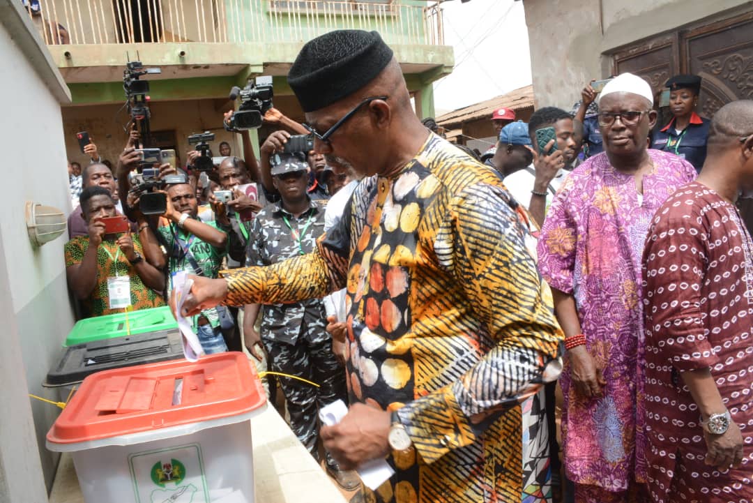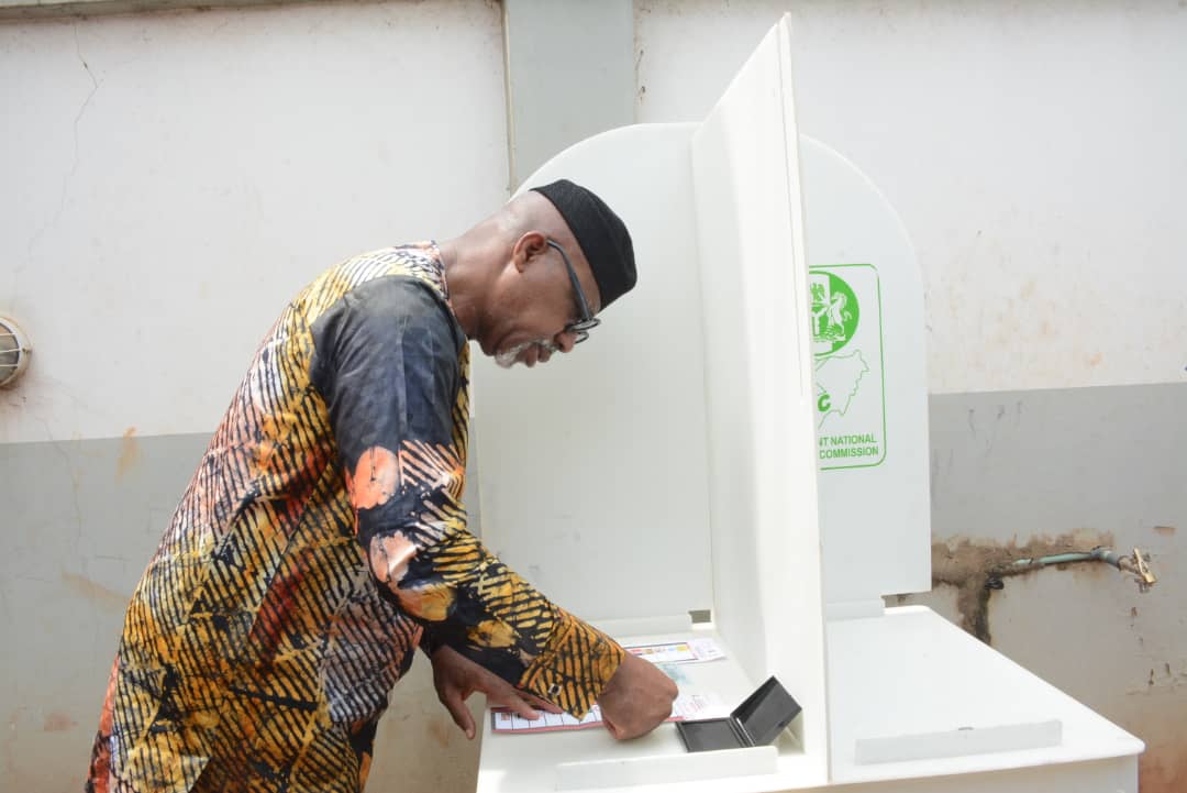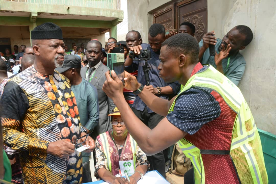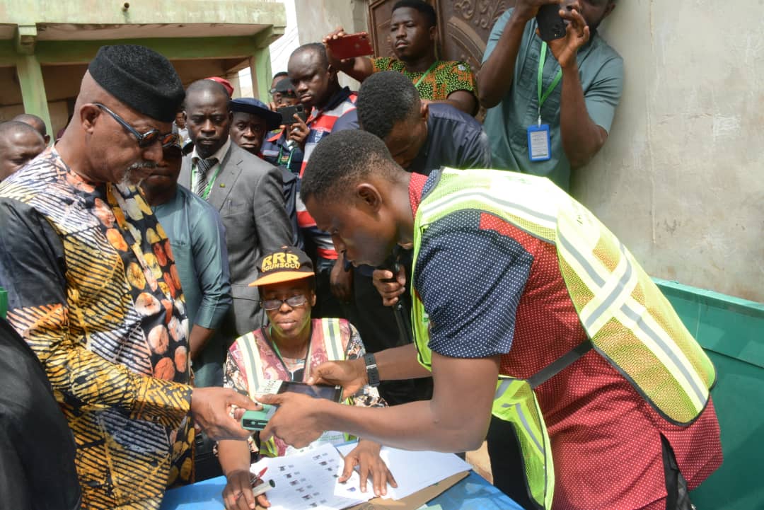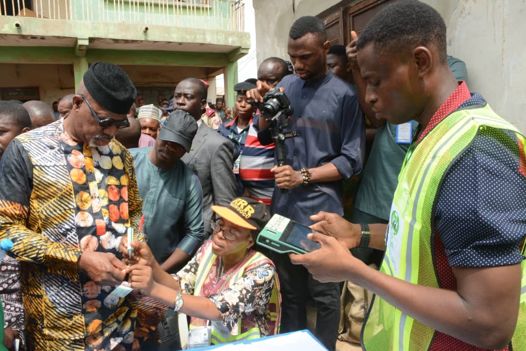 Ogun State Governor, Prince Dapo Abiodun, undergoing accreditation/voting at Ward 3, Unit 2, Ita Osanyin in Iperu-Remo, Ikenne Local Government Area during the Presidential and National Assembly Elections on Saturday