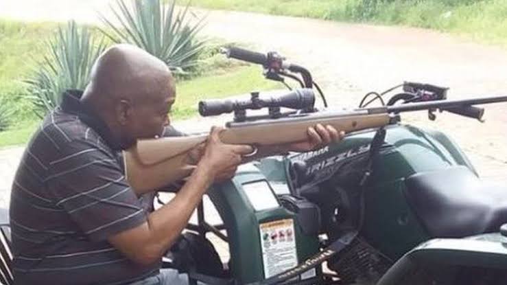 South Africa’s embattled former President Jacob Zuma has found himself at the centre of fresh controversy after tweeting a photo of himself taking aim with a rifle.