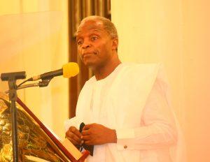 Yemi Osinbajo, vice president of Nigeria, giving his speech at the funeral.