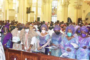 Margaret Shonekan (l), wife of the deceased, and her children.