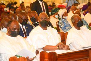 Yakubu Gowan, former head of state; Boss Mustapha, secretary to the Federal Government, and Yemi Osinbajo, vice president of Nigeria.
