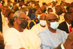 Olamilekan Adegbite (l), minister of mines and steel development, with Adeniyi Adebayo, minister of industry, trade and investment.