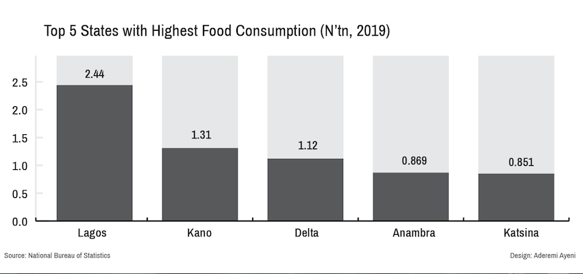 The above data show why the South is the market for most of the food produced in Nigeria and validates why Danjuma, who lives in Sokoto, takes the pain of moving his goods to Lagos where they are consumed more.