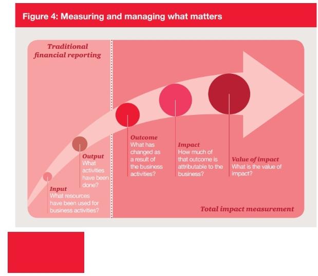 PwC has a useful framework for measuring and managing impacts. The Total Impact Measurement Management framework focuses on the difference between inputs, outputs, outcomes and impacts. The inputs are the resources and capital infused into a business; the outputs are activities that have been done; the outcome is the immediate feedback that occurs as a result of the investment, and the impact is how much of the outcome can be attributed to the investment.