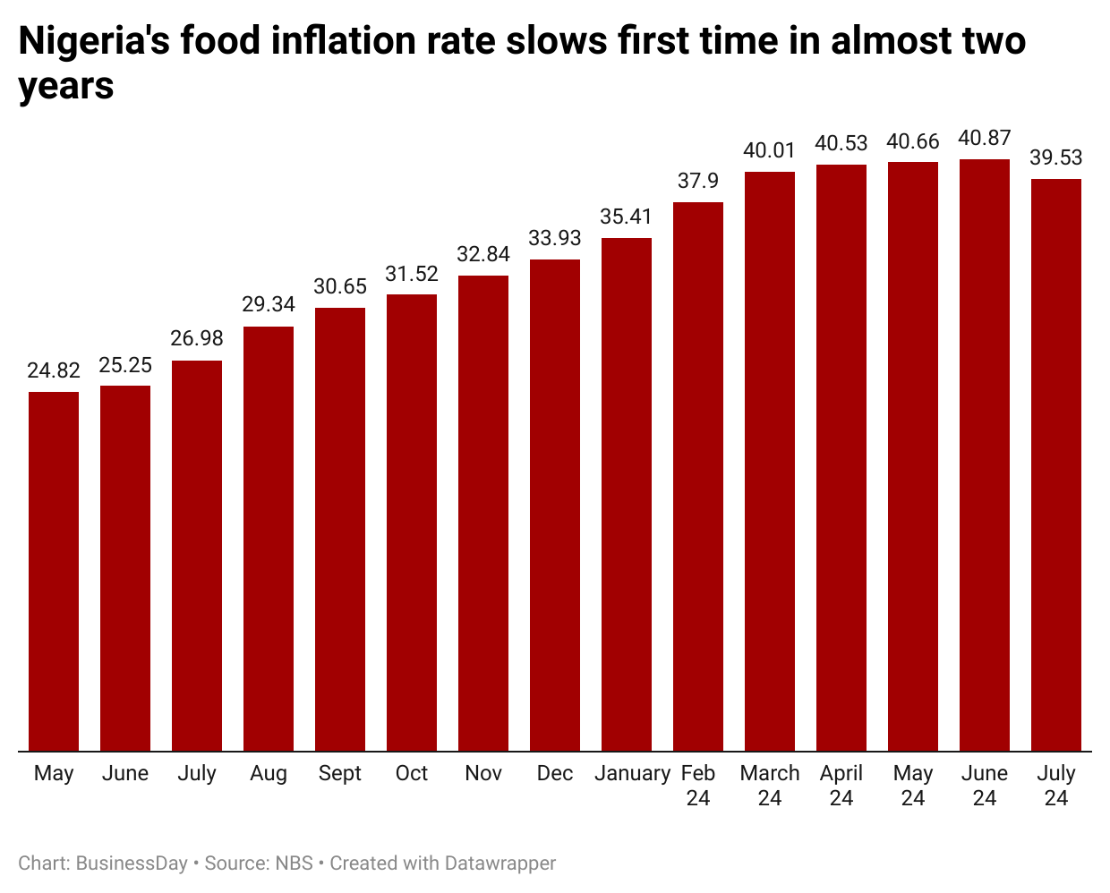 The National Bureau of Statistics is expected to release selected food prices for July on Wednesday.