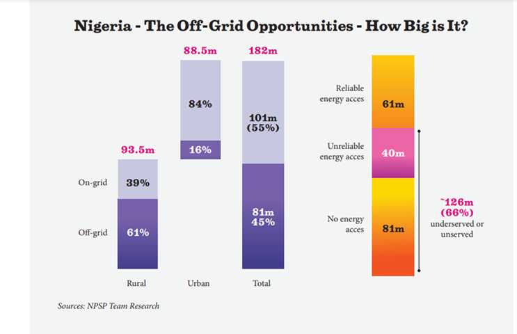 Nigerians are forced to generate power in small units from off-grid sources, typically fossil fuel-powered generators, to bridge the supply-demand gap.