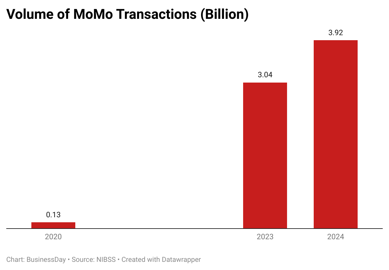 As traditional banks grappled with weeks of network outages, the amount transacted through mobile money apps increased by 69.58 percent to N79.55 trillion from N46.91 trillion in 2023, according to the Nigeria Inter-Bank Settlement System (NIBSS).