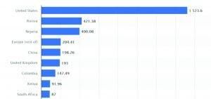 According to https://qz.com/africa/1947769/nigeria-is-the-second-largest-bitcoin-market-after-the-USA/ as of 1st September, 2020, “In the last five years, Nigeria has traded 60,215 bitcoins, valued at more than $566 million which, apart from the US, is the largest volume worldwide on Paxful, a leading peer-to-peer bitcoin marketplace.