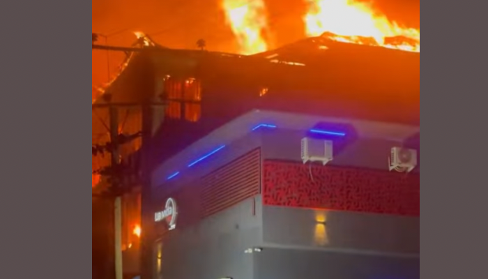 Viral videos online show fire burning through the roof of the building. However there are videos of the Nigerian fire service also at the scene.