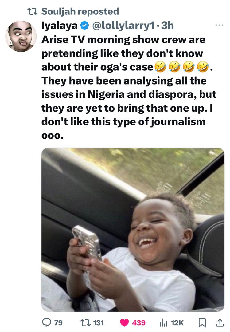 Meanwhile, some social media pundits took a swipe at Arise TV.