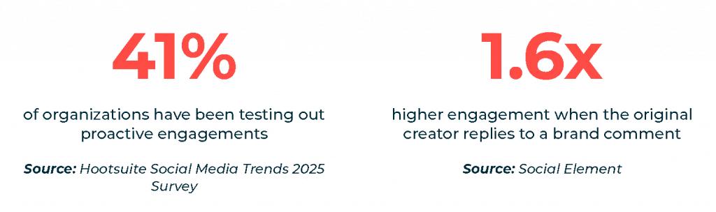 In 2025, as more brands attempt proactive engagements, the most strategic ones will go beyond the comments section to foster genuine relationships with creators and their communities as a prerequisite to building successful outbound engagement strategies.