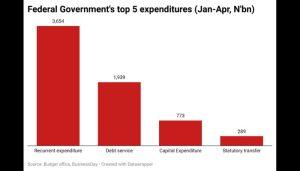 The Federal Government spent a total of N4.7 trillion on expenditures in the first four months of the year, with the bulk of its spending on recurrent expenses which was N3.6 trillion.