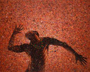 With Breathing New, Patrick Joël Tatcheda Yonkeu provides a jaw-dropping piece. Pictures do not do this piece justice. Seeing it in person in the wrong light doesn’t do it justice either. You need to get it right to see the details and not be afraid to get closer. From the glowing streams of the tree branches to the abstract representation of the lungs in a colourful aesthetic, we simultaneously experience beauty and discomfort. Conceptualised during the COVID-19 pandemic, this is a timely piece to confront our realities.