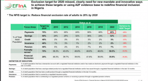 A breakdown of the EFinA’s report showed that Nigeria did not only miss its overall financial inclusion target, it was unable to also achieve other sub-targets outlined by the Central Bank of Nigeria.