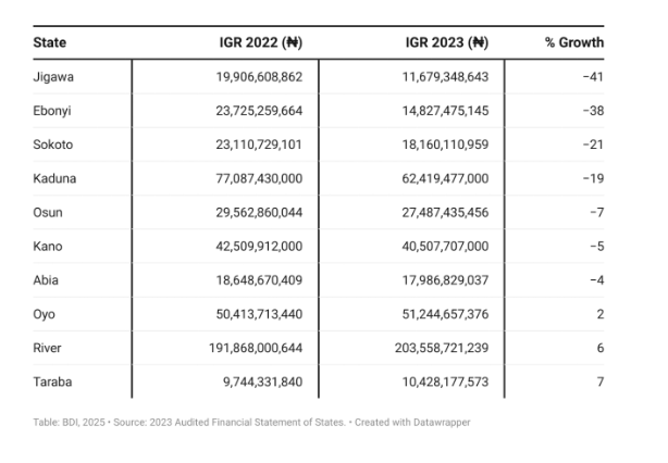 · Bauchi State, with an IGR of approximately ₦12 billion, receives over ₦80 billion annually from FAAC, highlighting its low fiscal autonomy.