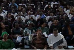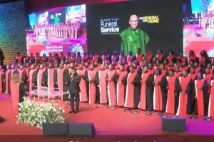 The funeral service started at 11 a.m. and was attended by a large crowd of mourners, including dignitaries such as the wife of the immediate past Vice President, Dolapo Osinbajo; Pastor Paul Adefarasin; Bishop Stephen Adegbite; Rev. Sam Adeyemi; and Peterson Okopi.