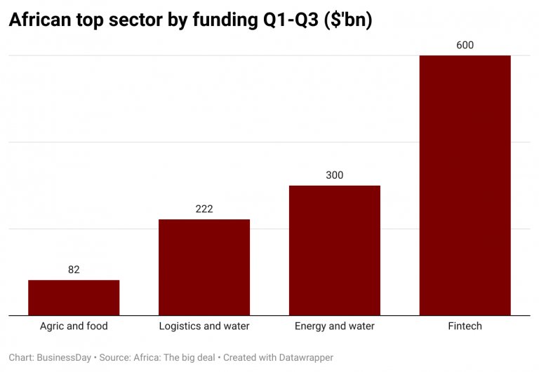 According to Africa: The Big Deal, the fintech sector attracted the highest funding from the first to the third quarter of the year, totalling $600 million.