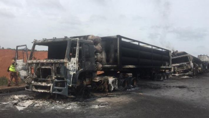 The Federal Road Safety Corps (FRSC) on Tuesday confirmed six tankers, five trucks and two cars destroyed in a tanker explosion at Ogere on the Lagos-Ibadan Expressway.