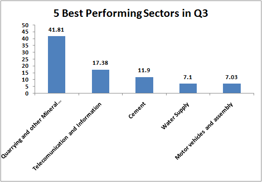 Other sectors like the financial institutions, chemical and pharmaceutical and food and beverages also performed well as they grew 6.8 percent, 6.6 percent and 5.6 percent respectively.